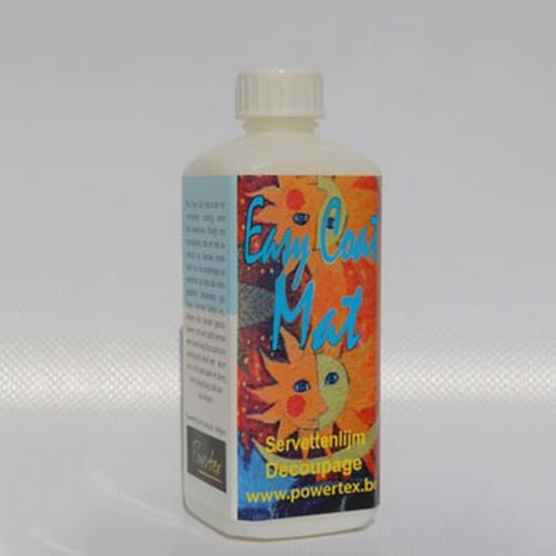 Το Easy Coat διατίθεται σε 2 εκδοχές: ματ και γυαλιστερό. Είναι ένα ποιοτικό προϊόν ειδικά σχεδιασμένο για την εφαρμογή χαρτοπετσετών σε όλες τις επιφάνειες εκτός από το πλαστικό: γυαλί, ξύλο, κεραμικά, χαρτόνι κ.λπ. Το Easy Coat δεν σκίζει ή τσαλακώνει τη χαρτοπετσέτα και στεγνώνει γρήγορα.Η ματ εκδοχή είναι για χρήση σε εσωτερικούς χώρους και δεν είναι αδιάβροχη.Το Easy Coat θεωρείται η καλύτερη κόλλα για χαρτοπετσέτες