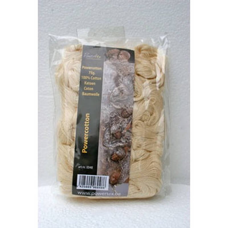 Το Powercotton είναι 100% ίνες βαμβακιού.. Αυτά τα 100% μακριά βαμβακερά νήματα μπορούν να χρησιμοποιηθούν για την εφαρμογή μαλλιών/περούκας σε γλυπτά με Powertex. Αλλά είναι επίσης πολύ ωραίο να προσθέσεις υφές σε έναν πίνακα, ένα γλυπτό ή οποιαδήποτε άλλη διακόσμηση. Κόψετα στο σωστό μήκος και τρίψε προσεκτικά το Powertex στις ίνες. Αφαίρεσε το επιπλέον Powertex και ολοκλήρωσε τη φιγούρα ή το αντικείμενό σου με ευκολία.