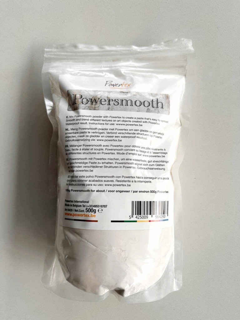 Το Powersmooth είναι η τελευταία εξέλιξη στη Powertex.Το Powersmooth είναι μια σκόνη μεταξένια, λεπτή και ελαφριά που στεγνώνει πολύ σκληρά και μπορεί να αναμιχθεί με Powertex για να σχηματίσει μια λεία πάστα. Είναι εύκολο να απλωθεί και μπορεί να χρησιμοποιηθεί για τη δημιουργία ποικίλων υφών.